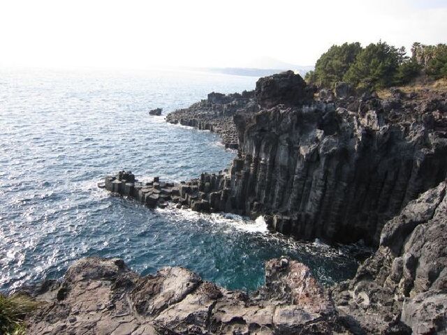 柱状节理带在中文观光区。游客在济州国际机场乘坐西部产业公路方向的巴士汽车,到中文观光园区内的“컨벤센타”前下车即可。