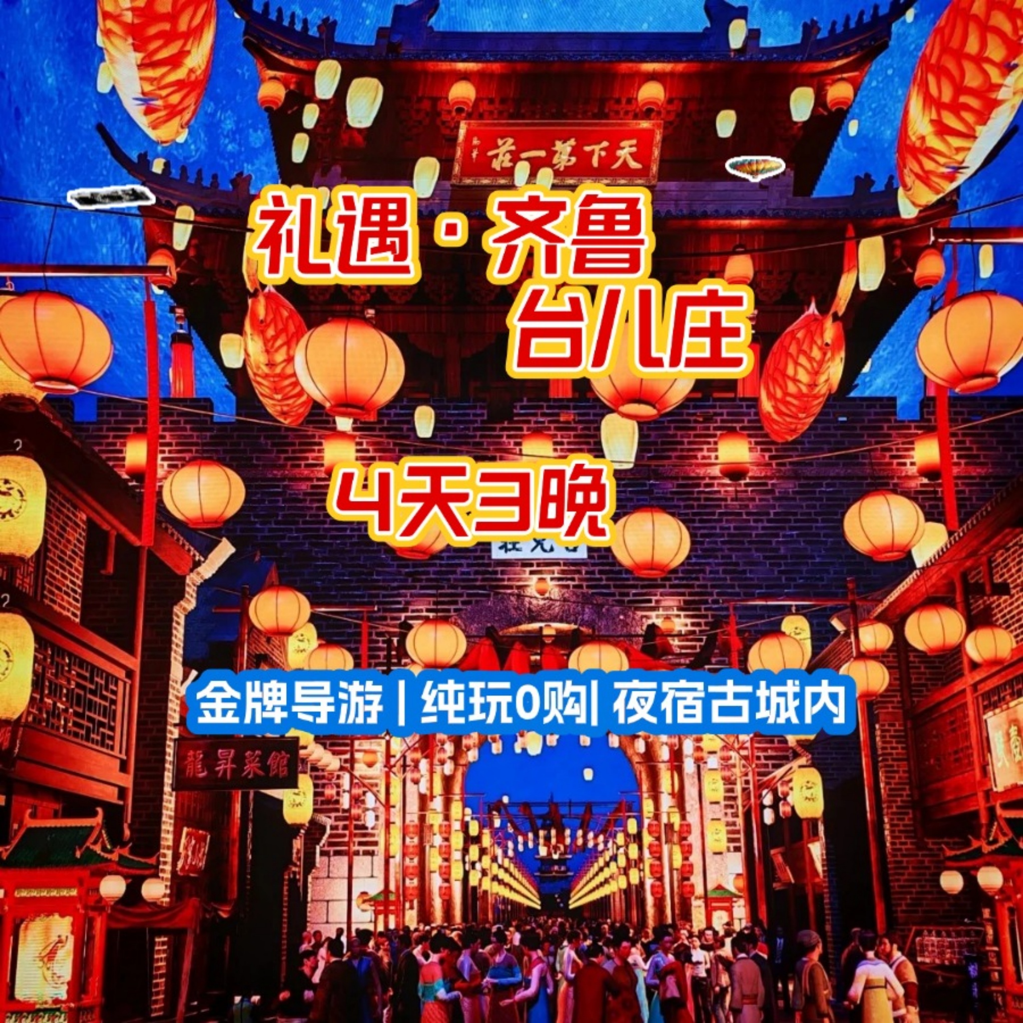 <济南-泰山-曲阜-台儿庄4日>纯玩0购物/金牌导游精讲/住古城内白加黑新玩法/泰山宴+孔府宴/赠100元皮影戏/60岁以下补门票/赠接送
