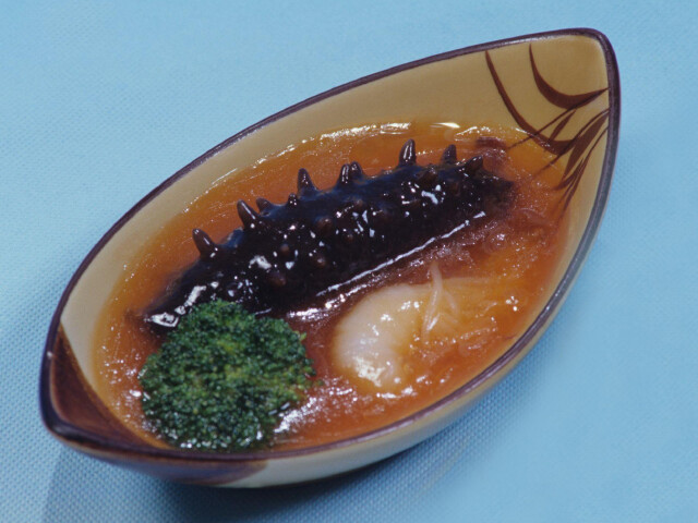 精选优质海参,纯正矿泉水发制。鲍汁采用干鲍、瑶柱、金华火腿、牛里脊、老母鸡等高档佐料,老火熬成