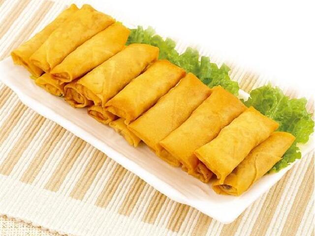 古代江南食俗,每逢农历元旦和立春日,合家团聚,饮春茶,吃春饼,贺新年。春饼是和以葱、韭等辛味蔬菜做成的,“辛”与“新”谐音,过年吃五辛(葱、蒜、韭、芥、蓼蒿)春饼,取除旧迎新的寓意。沪滨食俗,人们过年要吃韭黄肉丝春卷,是吃五辛菜,吃春饼古俗的传承。沪郊还有早春季节吃荠菜春卷的习俗。这种油炸食品具有外皮酥脆、馅心软嫩、颜色金黄、鲜香美味等特点。上海开埠后,春卷在一些小吃点心店里已常年供应,馅心花色亦有增加,以城隍庙绿波廊制作的韭芽肉丝春卷,颇为食客称道。