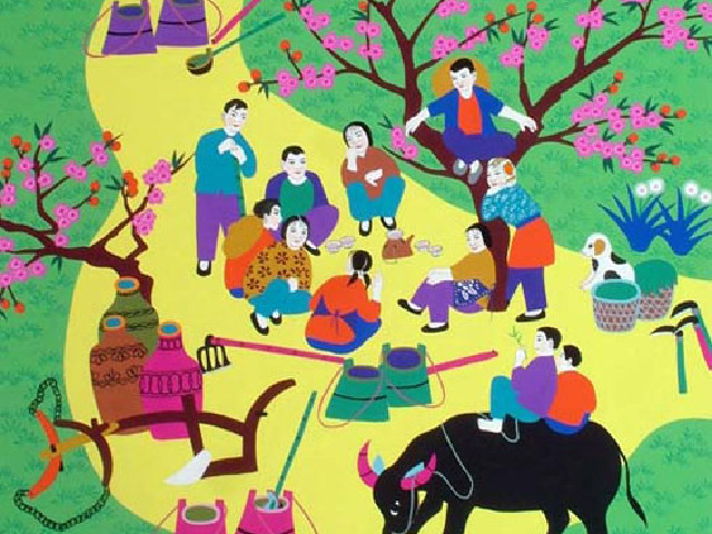 金山农民画是上海金山的民间传统艺术,发起于七十年代,包括灶头画、剪纸漆绘、民间