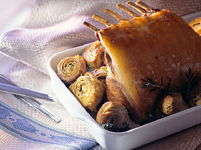 片烤方肉历史悠久,早在战国时期《韩非子》一书中就有记载.制法:(1)取用鲜嫩猪肉,将硬五花肉(肋骨之下部位)带肋骨6--7根剁下,然后用长把铁叉沿肋骨下叉入.将肉皮朝下放在明炭火上烧燎,至猪肉焦黄变黑,表面起泡时取下.(2)把猪皮有面刮净,再用清水刷洗净,使猪皮表面呈虎皮色.(3)生炉烘烤,山西传统使用焖炉(一种烤鸭、烤肉的方形烤炉),点燃高粱杆,待火焰燃尽、冒完黑烟,乘赤红灰烬时,用棍、铲慢慢拨平,并将前次烤剩的余灰少许覆盖于红灰之上(以防火大,将肉烤焦),然后用铁钩将方肉钩吊入炉,盖严炉门.洪烤约90分钟左右,待肉油出尽视肉已熟时取出.(4)将方肉修整,先把排骨部分平刀片下,再将方肉切刀改成约5厘米宽的大块,用利刀连皮切成薄片(定须切薄),码摆入盘内.(5)趁热上桌,上菜时须配葱丝、甜面酱、萝卜条或黄瓜条及荷叶饼,就像吃烤鸭一样,将饼面抹匀面酱,加放葱丝、肉片,裹卷起来吃,如果嫌腻还可再加萝卜条或黄瓜条.特点:吃片烤方肉如吃北京烤鸭,肥嫩不腻,香咸可口,吃完烤肉,酒足饭饱,余香悠长
