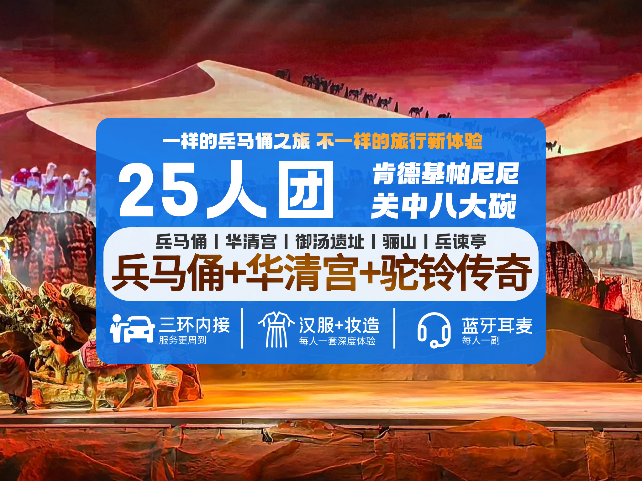 <西安兵马俑+华清宫+驼铃传奇一日>百戏俑丨50周年纪念馆丨汉服妆造丨肯德基早餐+关中八大碗丨白鹿原西博直通车