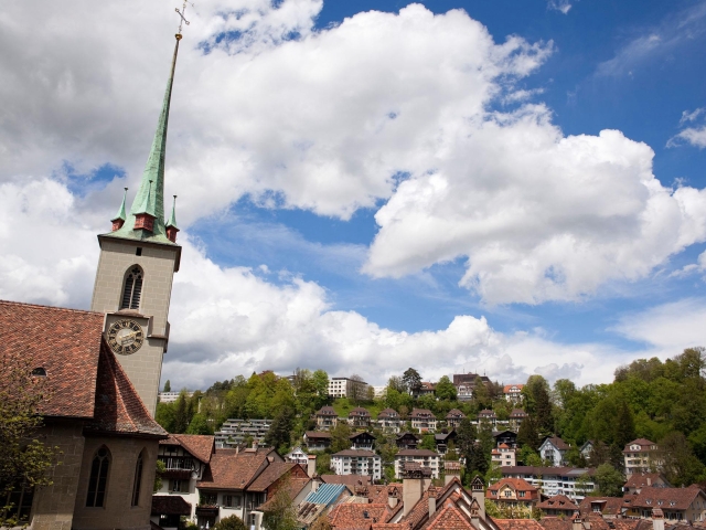 伯尔尼大教堂 (Muenster)是具有代表性的建筑之一。大教堂始建于1421年,花费了近一个世纪才完成。19世纪末,又在教堂顶上修建了高度为100米的尖塔, 使之成为瑞士很高的教堂。这是座哥特式的大型建筑,正面有著名的《最后的审判》浮雕以及15世纪时的彩绘玻璃。教堂内有一架由5404根铜管建成的管风琴,为瑞士境内很大的管风琴;在圣诞节和音乐会期间,这架18世纪的管风琴还会奏出美妙的音乐。此外,顺沿教堂内254级台阶的螺旋式楼梯,可以来到教堂中部的瞭望台。逢每月的首个周六,大教堂所在的广场上还会举办手工艺品市场。