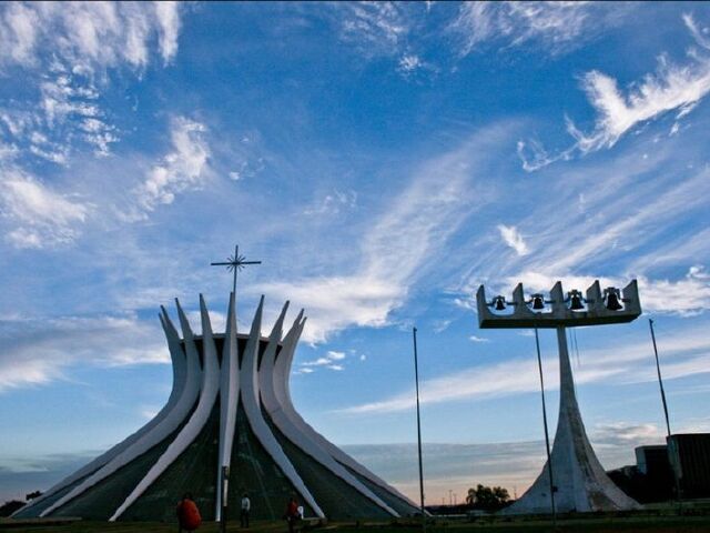巴西利亚大教堂与传统的欧洲教堂迥然不同。教堂主体坐落在地下,人们通过甬道进出。