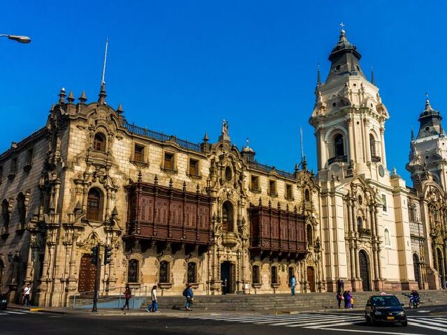 利马大教堂是一座罗马天主教堂,起初建于1555年,之后由于地震的原因经过多次的修复和重建,但依然保持着殖民地的建筑结构和外观,是利马的标志之一。利马大教堂是由弗朗西斯科·皮萨罗设计的,他的棺材就在小礼拜堂内。 利马大教堂是利马城内的传统欧式建筑,教堂内有银饰祭坛和小教堂。大教堂的内部非常具有吸引力,精致的穹形天花板、独特的棋盘地板都吸引着游客前来。