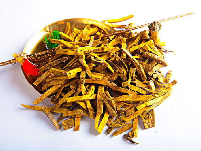 峨眉黄柏以树皮、根皮入药,性寒、味苦,能清热燥湿,泻火解毒,退虚热,多用于热痢、肠炎、肝炎黄疸、腿膝软、小便短赤涩痛等病症;又可用于热毒疮痈、皮肤湿疹及耳内流脓等;还有类似黄连的广谱抗菌、降压有利胆的作用.《珍珠囊》概括了它的功效,认为:"黄柏之用有六,泻膀胱龙火,一也;利小便结,二也;除下焦湿肿,二也;痢疾先见血,四也;脐中痛,五也;补肾不足,壮骨髓,六也."《本草纲目》认为可"治口舌生疮".这种药材以皮细、肉实,水浸湿后粘性尹强为上品;以皮粗体脆,少粘性,色淡为次品.峨眉黄柏属芸香科,落叶乔木,高可达10-20米.树皮暗灰棕色,比较薄,内层黄色,质坚硬,带有粘性.小枝紫褐色,光滑无毛.叶片对生,为奇数羽状复叶,小叶矩圆诽谤披针形至矩圆状卵形,顶端长而渐尖.花单性,夏季开花.浆果球形