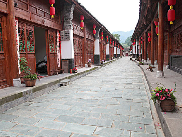 柳江古镇建于南宋,与现代建筑一水之隔的是明清时代的建筑。一座座古朴的木板房吊脚楼依着根枝盘错的黄葛古树,木板房半边街的尽头,连接着一条石板长街,不着一字,尽现街道的沧桑古朴。