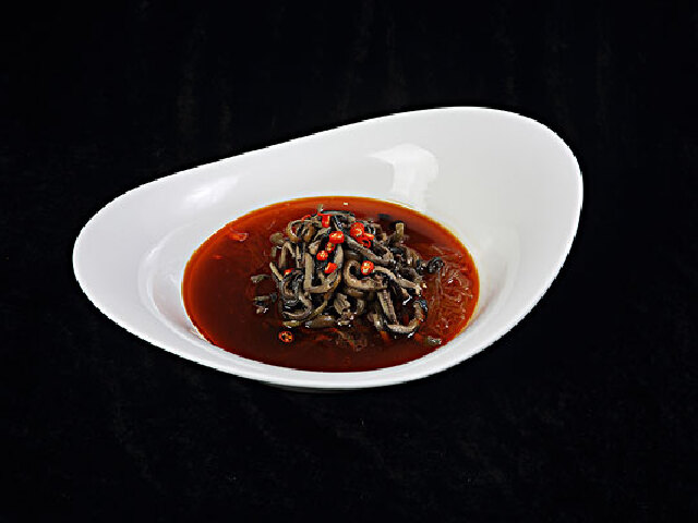 盘龙鳝鱼是自贡的特色美食,全部精选三五寸长的仔鳝鱼,不去骨。烧好上桌后条条小鳝鱼如潭间盘龙一般,煞是好看。曾经有吃小鳅鱼不吐骨的传统,其实这个盘龙小鳝鱼要吐的骨头也很少,甚至不吐,是很好吃的一道菜。