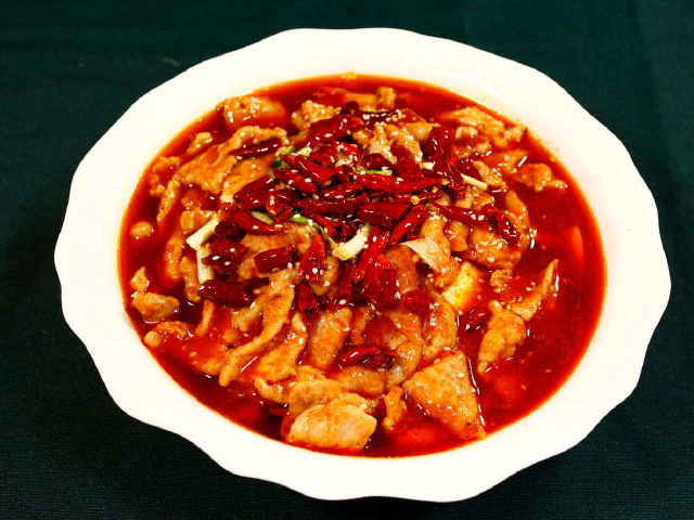 水煮牛肉是地道的川菜美食,主料瘦黄牛肉。辅料豆芽、鸭血、肉汤、莴笋或者其他蔬菜、粉丝。因菜中牛肉片是在辣味汤中烫熟,故名水煮牛肉。此菜麻辣味厚,滑嫩适口,香味浓烈,具有川味火锅麻、辣、烫的风味。