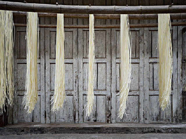 石佛挂面所用面粉全是制作者自己粉磨的当地所产冬小麦.制作挂面要经过和面、揉面、上案揉压、切条、搓条、缠条、上水箱、下箱、二次搓条、整条、上架、下架、切面、装把等十几道工序.石佛挂面条形精致均匀,黄亮美观,口味纯正,质量上乘,不仅为天水本地人所钟爱,成为馈赠亲友的佳品,而且远销兰州、西宁、新疆等地,受到了广大消费者的欢迎
