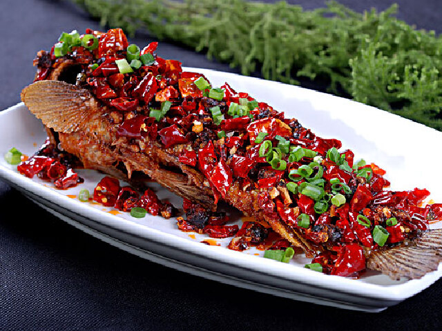 其制作工艺是:将五尾大小相仿的鲫鱼,治净,在鱼身两面各剞两刀.泡青菜切成细丝.炒锅用大火烧热,下油,烧至2000C左右,放鱼入锅炸,至皮紧,滗去部分油,锅内留油100克,用勺将鱼推至锅边,下泡红辣椒末、葱花、姜蒜末,醪糟汁,炒出香味,将鱼移至锅中间,再放鲜汤、酱油、红酱油.待汤烧沸后放泡青菜,再烧约10分钟,鱼捞出装盘内.锅中加醋、葱花,用水豆粉勾薄芡,浇在鱼上即成.