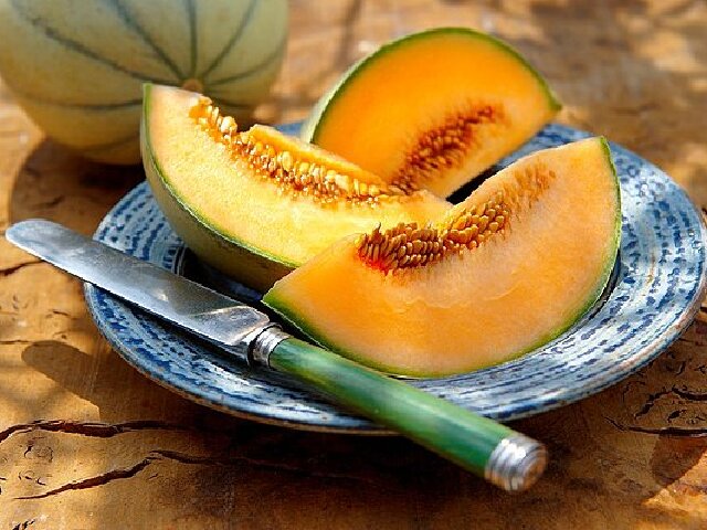黄密宝属中晚熟品种,生育期110天左右,果实发育期50天,单瓜平均重4.5公斤,果实长卵圆型,果柄不脱落,果面黄色,覆有绿色条斑,网纹中粗,密布全瓜,果肉桔红色,肉厚4.5厘米,肉质松脆,皮质较硬,耐贮运