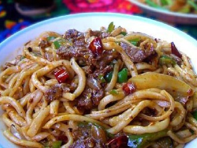 新疆地区比较有特色的主食,色香味完美统一。 主要原料:拉面、羊肉、青椒(或蒜台)、干红辣椒(不吃辣的可以省去)、洋葱、蕃茄酱、蒜末。拉面劲道爽滑,羊肉鲜美入味,天生的美食要素。营养价值也很丰富,蛋白质、淀粉含量都很高。