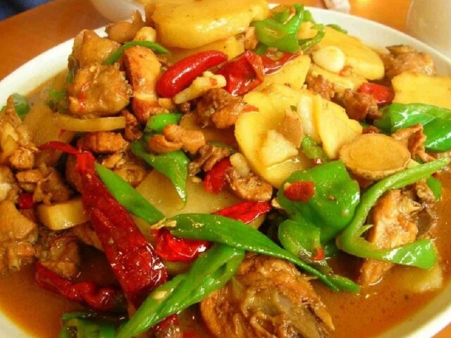阿拉尔大盘鸡源自九十年年代初,主要的原料是鸡块、土豆、蘑菇、红绿辣椒等,大盘鸡色彩艳丽,鸡肉细嫩麻辣爽口,鸡肉内的蛋白质比例很高很容易被人吸收,强生健体滋补的佳品,土豆既糯又甜,香中有辣。经济实惠,是去阿拉尔必吃的一道菜,当地大大小小的餐馆都可以吃到正宗的大盘鸡,快来一饱口福吧!