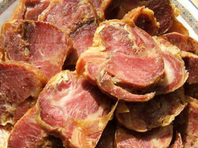 是哈萨克人的一种熏肉制品。在马肠子中灌入马肋骨肉,用爬地柏熏制而成,吃时切片蘸佐料,其风味浓郁、独特。 购买地点:当地土特产专卖店 价格:100-200元/斤