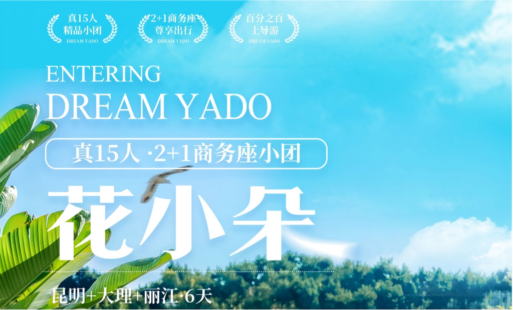 <云南昆明+大理+丽江6天>15人团+2+1商务座+必含导游+雪山大索道+扎染体验+换装旅拍+单人可拼房