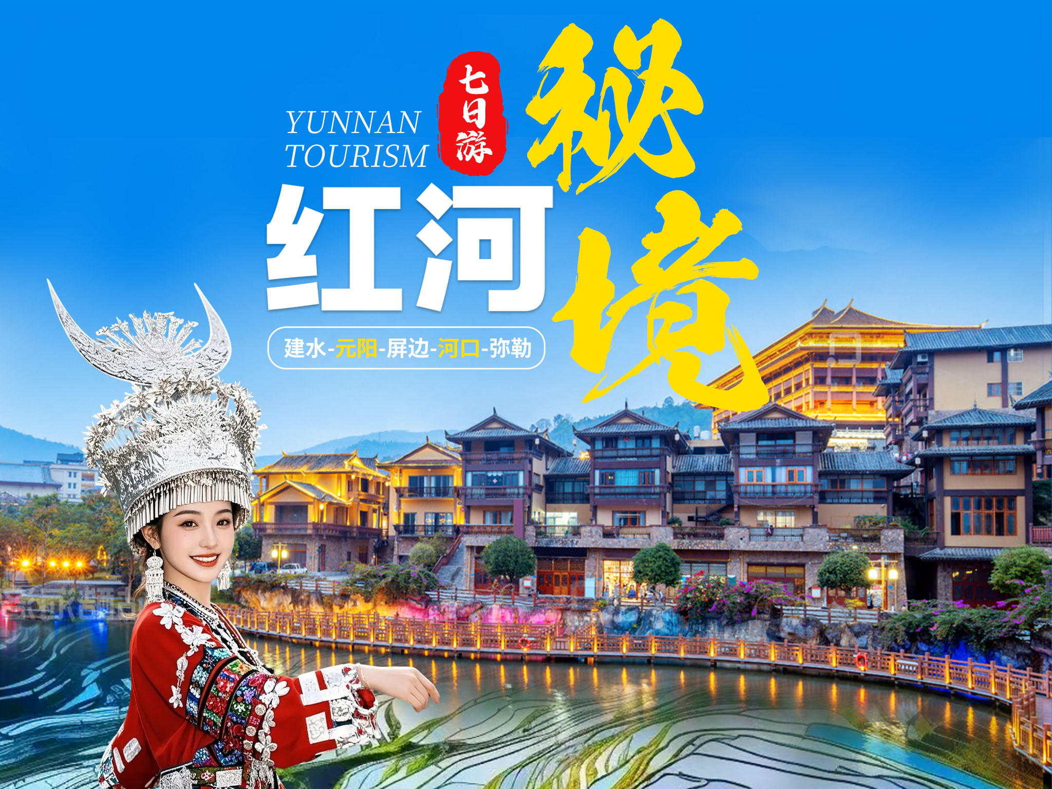 <拼小团元阳+弥勒+建水+哀牢山双飞7日>5晚4钻酒店,河口观景咖啡,百年铁路集市赶集,2至8人小团,2人发团