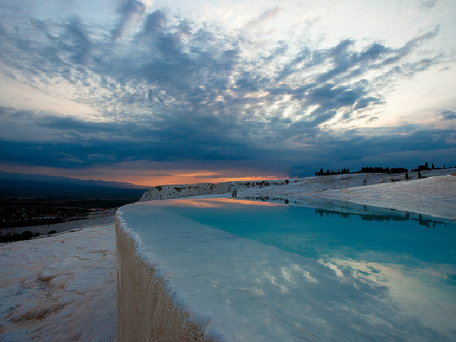 棉花堡的泉水深浅不一,有些只及脚踝,有些可及腰部。水温终年保持在36-38摄氏度,酸碱值大概6左右。不仅可以饮用,还可以泡温泉。尤其是在炎热的夏天,温润凉爽的泉水更令人感谢这大自然赐予的奇迹。