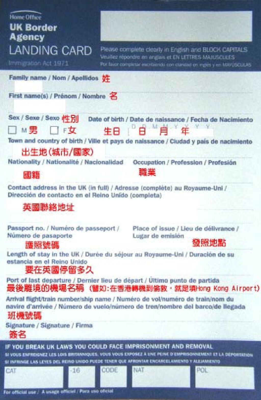 飞机到爱尔兰后需填写入境卡,将护照一并交给入境官。在入境时,移民官员对入境人员进行例行的查问。