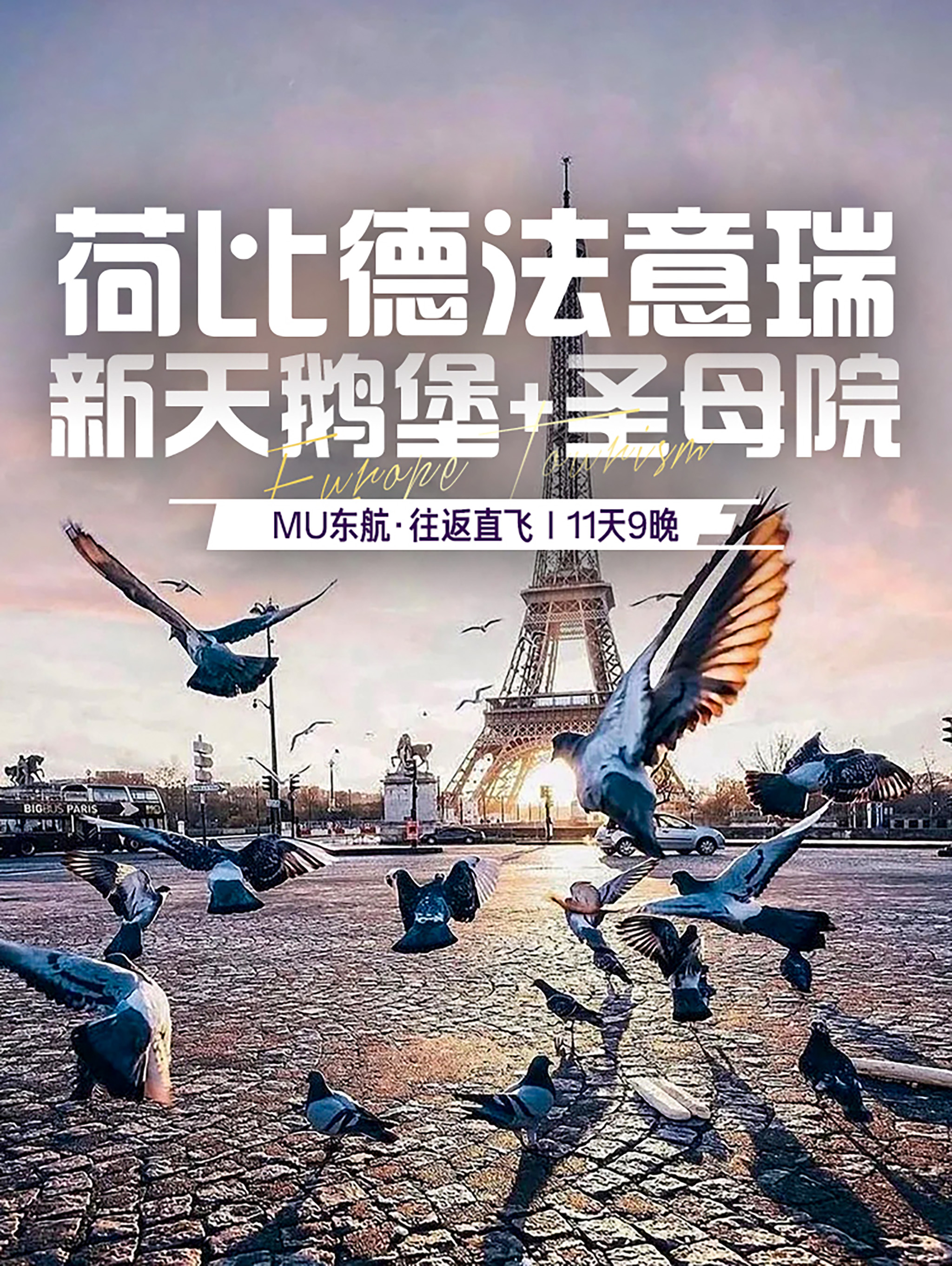 <荷比德法意瑞+新天鹅堡+巴黎圣母院11天9晚>东方航空丨体验双宫双游船丨意大利签证