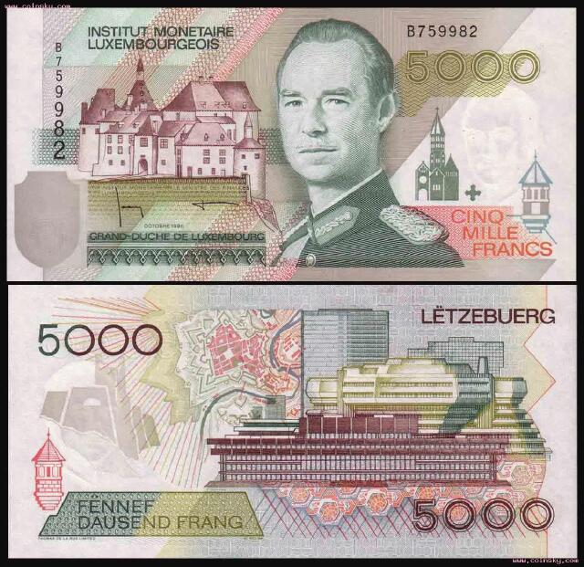 纸币面额分为5、10、20、50和100五种,铸币为: 25分和1、5、10、20法郎。一卢郎等于100生丁(分),欧元与卢法实行固定汇率:1欧元=40.3399卢法。