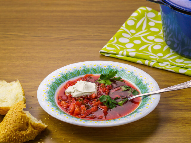 红菜汤可以算的上是乌克兰国宝级菜汤里,来到乌克兰不可不尝。红菜汤是用红菜头加上蔬菜和奶油熬成的汤,菜汤奶香浓郁,味道稍微有一些酸,但是非常开胃,特别适合饭前吃。而在乌克兰,美宜佳餐厅的红菜头味道和配方都不尽相同,不同的餐厅有不同的风味和特色。