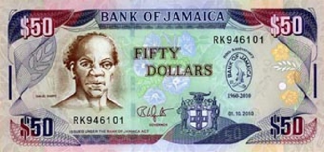 牙买加元(JMD)从1969年起为牙买加的法定货币。通常它被简化为美元标志 $,或者J$ 或 JA$以使其与其它美元标价的货币区分开来。此外,美元在大部分地区可以直接流通。 纸币的面值有1000,500,100,50,20,10,5,2和1元。 硬币的面值有1、5、10、20、25、50分和1元。 其中币种的兑换进位为1元=100分。