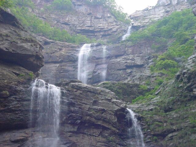 三叠泉又名三级泉、水帘泉,古人称“匡庐瀑布,首推三叠”。相传曾经李白和朱熹都在这附近结庐而居,但是都没有发现此处胜景,直到南宋才被发现。三叠泉附近的森林覆盖率达89.9%,有圆头柳杉、灯台树、杜种等2331种植物和动物200多种。听瀑鸣如击鼓,声音吼若轰雷;瀑布气势非凡,喷晶抛珠,水洒溅玉,如连垂素练,终落入深谷。