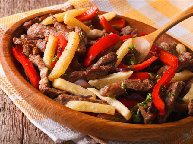 早在19世纪初,很多中国人开始移民到秘鲁,在工作之余,也给秘鲁带来不同的烹饪文化。于是,在移民潮的影响之下,秘鲁炒牛肉逐渐演变成国民菜肴,成为当地的特色美食。秘鲁炒牛肉选用牛腰肉,放入番茄、青椒、洋葱、炸马铃薯一起混炒,然后加上酱油什么的。在餐厅里点上这道菜,通常会跟着饭一起呈上桌,浓浓的中国风味飘过来了,有没有?
