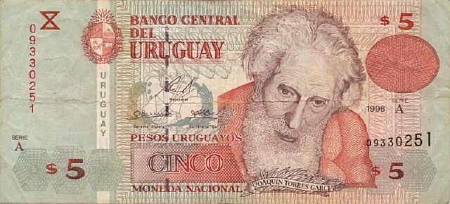 乌拉圭流通的币种有纸币和硬币,乌拉圭比索的代码为UYU。1975年该国启动币制改革,目前新旧二种币制通用,旧比索1000相当于1个新比索,新币制较通用。2002年,受阿根廷和巴西的危机影响,乌拉圭被迫实行货币兑换自由浮动政策,引发国内金融市场剧烈震动,乌拉圭比索大幅贬值,国家风险指数达到创纪录的1616点。在政府的努力下,目前该国货币与美元汇率已有一定回升。 纸币的面值有5、10、20、50、100、200、500、1000、2000新比索。 硬币的面值有 10、20、50分和1、2、5、10、50、100、200、500新比索。 其中币种的兑换进位为1新比索=100分。