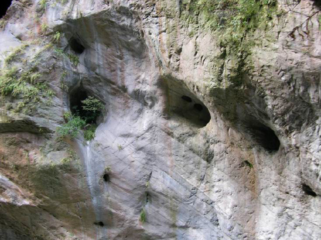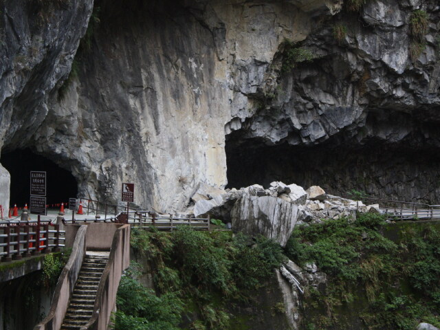 九曲洞,位于台湾太鲁阁国家公园,也是中横公路上的一大奇景,路经的中外游客对其叹为观止。中横公路穿山凿洞而建,一路上各种尖峰绝壁,断崖奇石,道路在坚硬的岩壁中穿行,蜿蜒曲折,为人力与大自然鬼斧神工的奇妙结合。在此路段游客可以舍车就步,更好的欣赏壮观的景色,赞叹大自然劈山的威力。九曲洞这里还有奇观——鱼跃龙门,近看像是一条大鱼正在奋力上溯,溪水顺着鱼身流淌下来,水瀑纷飞,十分生动形象。