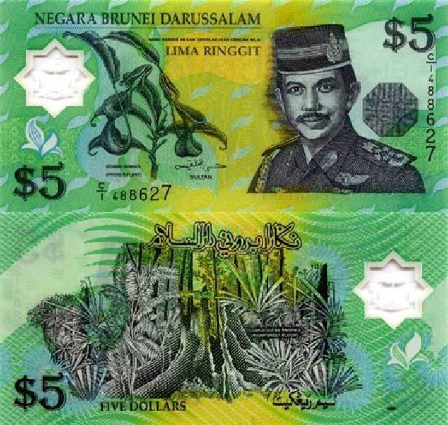 文莱流通币种有纸币和硬币,文莱元的代码为BND。 纸币的面值有1、5、10、50、100、500、1000文莱元。 硬币的面值有1、5、10、20、50文莱分。 其中币种的兑换进位为1文莱元=100文莱分。
