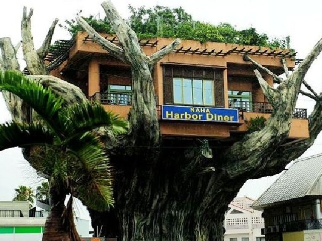 抵达冲绳后,从机场进入那霸市区时会路过当地的地标建筑“树屋”。它其实是一间建造在高20英尺的大榕树上的餐厅,在异国风味洋溢的店内,您尽可享用冲绳料理、泰国料理、中华料理等。十分受欢迎的菜色是泰式超辣红咖哩。此外,还供应新加坡、菲律宾等亚洲各式的啤酒。在此用餐,你可能会感到一种童趣和温馨。