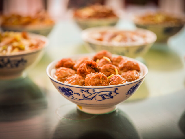 油炸丸子,也叫红丸子,是选用优质的山羊肉,经过人工的捶打,保证肉质的细腻绵软,然后再经过热油炸制,再蒸制而成的。外皮酥脆,内里细嫩,吃一口就欲罢不能。