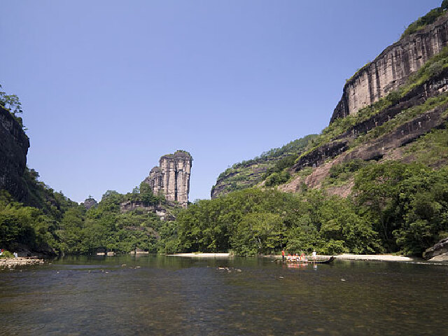 漂流一般是从九曲到一曲顺流而下,这样随波逐流,更加轻快、迅疾。游九曲,所乘之舟为8-9根去皮毛竹烤后扎成。吃水浅、浮力大,游人乘坐安稳舒适,视野开阔,可见山景,能赏水色,九曲溪漂流而下既轻松惬意,又有惊无险。