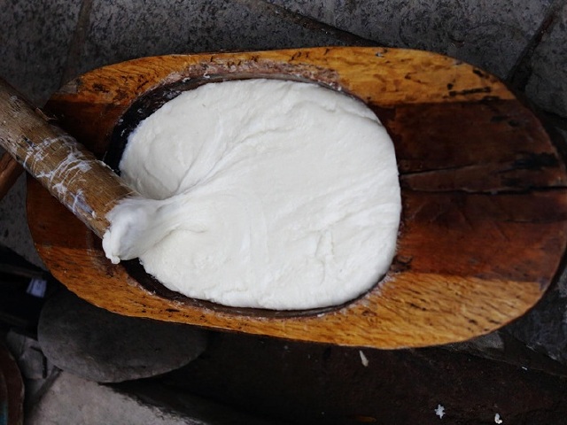 打糕是把糯米蒸熟后捶打而成的,食用时切成块,沾上豆面或蜂蜜等,吃起来筋道、味香。因此,朝鲜族历来把打糕当作上等美味,每逢年过节或婚姻佳日及迎待贵宾时,都要做上打糕摆上餐桌 ,是当地有名的特色特产。