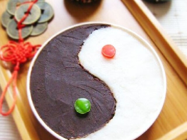 “香饭青菰米,嘉蔬紫芋羹”。这是唐代诗人王维赞美芋头的诗句。芋头历来是盘中佳肴。“太极芋泥”是闽菜传统甜食之一,福州地区逢吉辰喜庆,筵席上多有此菜。 蒸熟的芋头去皮碾成泥后,拌上猪油白糖、香料、芝麻等在旺火热锅上翻搅均匀后装入盆中,并用红枣、山楂熟莲子、冬瓜糖等在芋泥面上装饰成太极图案,关键的是后淋上的一层熟猪油,这样便将热气封存住,冒不出来了。