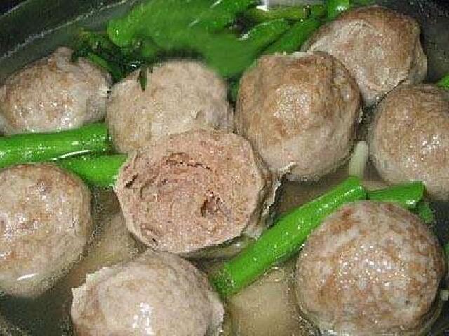 柘荣、福鼎主要地方风味之一,在区内外颇有盛名。制法:取精牛肉制成肉酱,番薯粉研细,放精盐、味精、白糖和少许食用碱,一起揉拌均匀,成牛肉丸坯,锅内烧滚汤将丸坯投于锅内,浮起则熟,捞于碗内,加汤放辣椒、米醋,即为美味开脾的牛肉丸。