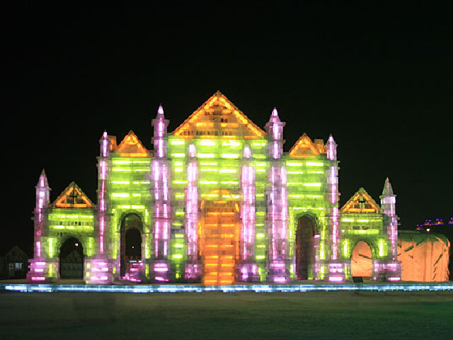 在东北诸多民间艺术之中,冰灯可以说是颇具有代表性的民间艺术,也是颇能突现“北寒”特点的艺术,在20世纪七八十年代,每逢年关,几乎家家都会自己制作简易冰灯。他们使用一种下底小而上口宽的水桶装满清水置于外面冻,当桶内冻严后,于上面正中开一圆孔,将桶内未冻的清水倒出,拿到屋内慢慢溶化。再于灯壁上用清水粘上剪纸或“喜”字之类,这样一个冰灯就完成了。点燃油灯或蜡烛,红彤彤地照亮了整个院子。