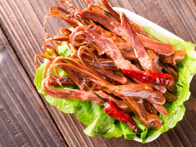 温州鸭舌是一道浙江温州著名的汉族小吃,属于凉菜,鸭舌是卤的,风至半干,在口中细嚼,韧性十足,颇为耐嚼。温州人称鸭舌为“鸭赚”,而不称鸭舌。在温州话中舌发音和亏钱发音相近,但是温州生意人多,觉得“舌”的发音不吉利,所以把鸭舌改称为“鸭赚”。