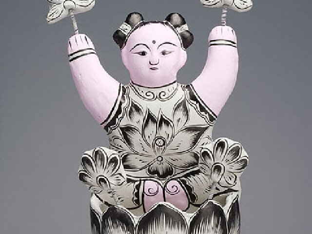 嵊州泥塑开始成规模是在七十年代,创建历史不长,但由于吸收众家之长,而自成一派。嵊县泥塑精雅小巧。较小的微形泥塑,只有钢笔头那么大,但仍然嘴眼分明,形态传神,生动细腻。艺人们十分讲究色彩的运用,他们采用民间传统的描绘手法,设色精当,艳而不俗,使“彩”和“塑”浑然一体,因而嵊州泥塑实际是彩塑,把形体塑造和色彩描绘巧妙结合的艺术作品。