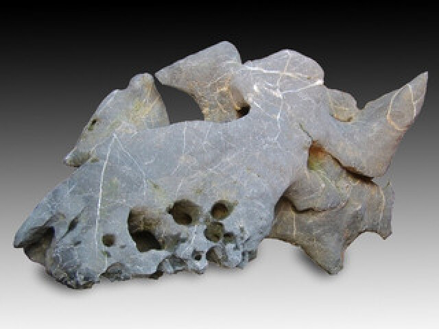 又称巢湖太湖石,主要产于安徽省巢湖之滨的银屏山一带土中。该石系沉积岩中被溶蚀的石灰岩,其色泽与太湖石相似但偏紫;石中多有方解石组成的筋脉纵横穿插,有的石上附有珊瑚等海生无脊椎动物化石;形态玲珑剔透,多有孔穴洞穿石体,孔径圆而壁光;体量大小悬殊,大者长约5米、高3米,重100吨以上,小者仅几百克,尤其20吨左右的比比皆是;造型多成群山之势,偶尔似有人物、动物状者。巢湖石可用于堆叠大型假山,姿态峰峦叠嶂、洞穿穴绕,气势磅礴;其高大秀美者,亦可一石成景;小巧玲珑者,可作厅室清供。