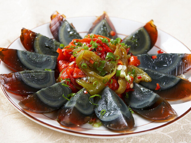 仙游皮蛋是以独特的科学传统配方加工而成的,质地透明有弹性,味道鲜美,食后甘味回旋,具有清凉、解毒、消化之功效,特别是可以减少胆囤醇,品质上乘,是餐桌上的一道好菜。