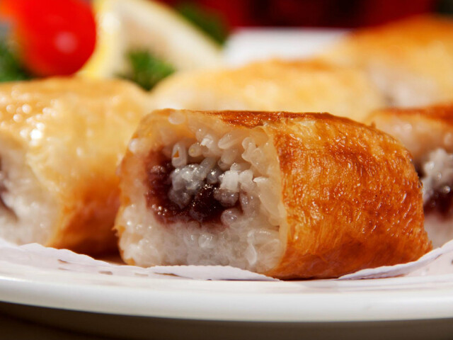 碧玉卷是福建泰宁著名的汉族小吃,属于闽菜系。碧玉卷的馅料有荤素两种:荤的馅料以猪肉、香菇、笋丝、酸菜、长豇豆、葱、辣椒粉、味精、香油炒熟;素的馅料则用香菇、豆腐干、腌菜、长豇豆、薤子等做成。