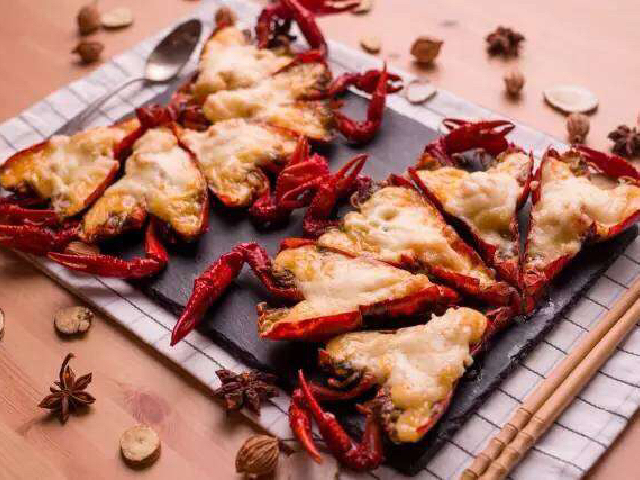 一棠厨师匠心独运研发新品-赤焰芝士龙虾,是将虾子的美味配上浓郁的芝士,口味独特,很受欢迎。