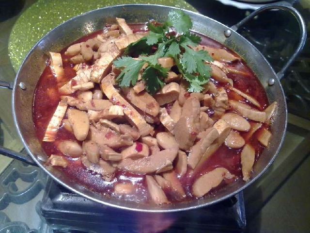 牛板筋是牛背部连接全身运动肌肉的主大筋,入口保留了Q弹的口感之余,嚼开之后软烂而化渣,口感非常有层次。厚厚的红油保持着高温,让浸在里面的牛板筋很入味儿,不刺激,是一种温厚的辣味。