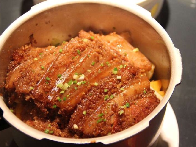 湖北人家家户户都会做,粉蒸肉颜色微微红润,切的肉片大、略厚,上面细细裹着的米粉,被肉汁浸得油亮,味道极富层次感。