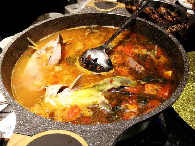 独特的酸汤一开,现杀新鲜的黄鸭叫,辣味不重,酸度适中,肉质鲜美细腻,风姿绰约,一点泥腥味都没有,吃鱼前后小喝一口酸汤,暖胃暖心。