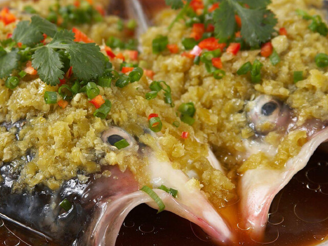 剁辣椒鱼头是湖南湘潭的特色美食,色泽红亮,鲜香可口,肉质细腻。
